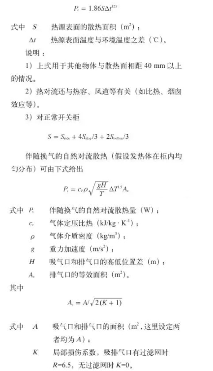 (2)熱對流是物體外表與相觸摸的流體間有溫差時出現的傳熱現象。柜體外表、氣箱外表或熱源外表的天然對流散熱可用下式預算