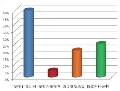 在被調(diào)研目標在本單位選購產(chǎn)品辦法的選擇上,認為需求工作比對的占比50%;需求協(xié)作推薦的的占比5%;經(jīng)過資質(zhì)選拔的占比20%;依托投標收買的占比25%。如圖11所示。