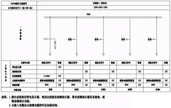 電纜分支箱用于非骨干回路的分支線路,作為結束負荷接入用電運用,適用于中小客戶會合區(qū)域進行負荷分接時的接入用電,不該接入骨干環(huán)網(wǎng)及聯(lián)絡。電纜分支箱選用電纜進線1回,出線2回或4回,出線回路數(shù)可根據(jù)運用需求選用,額定電流為630A。選用全絕緣、全封閉、全屏蔽可接觸式結構,以及選用防凝露、防內部缺點電弧外泄等方法。