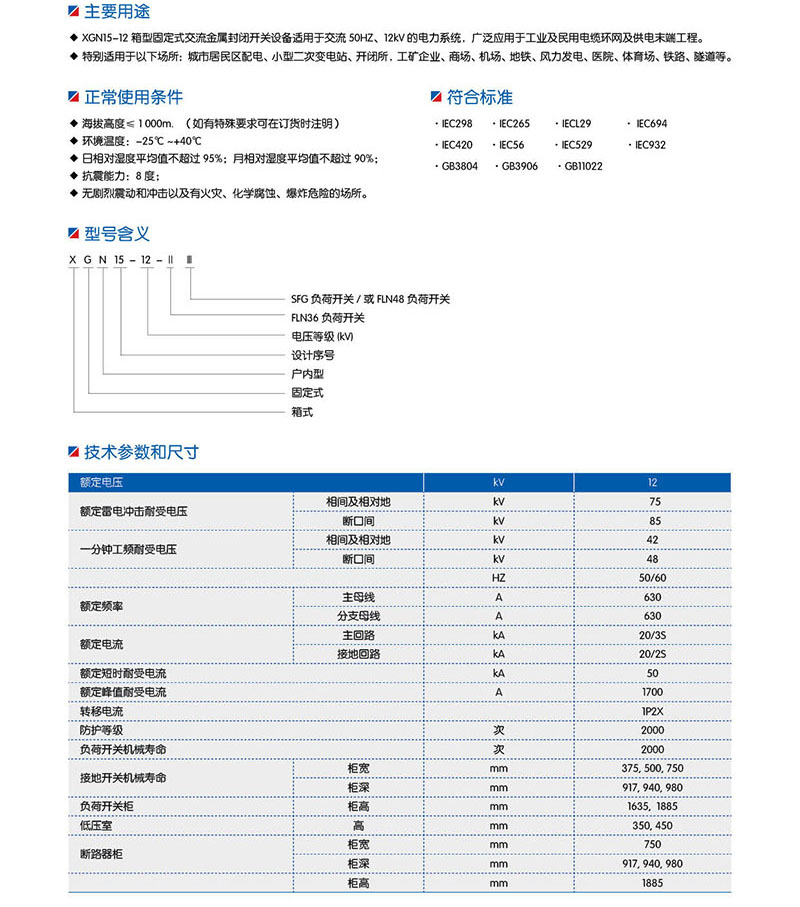 XGN66-12 戶內箱型固定式金屬封閉開關設備